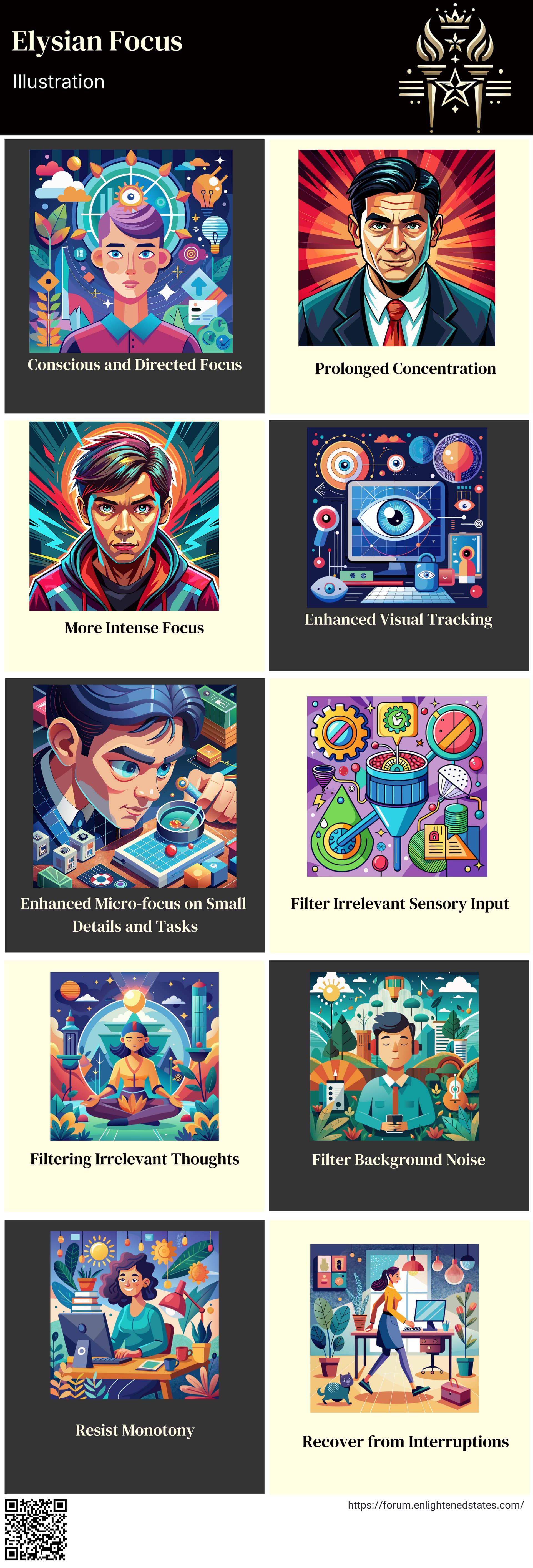 Introducing Elysian Focus, an advanced audio field designed to harness your ability to concentrate deeply and maintain prolonged focus. This field sharpens your attention, allowing you to stay engaged and productive even in the most chaotic environments. With enhanced visual tracking and microfocus capabilities, you can zoom in on the tiniest details, filtering out irrelevant thoughts and sensory input to maintain a clear and uncluttered mind.
